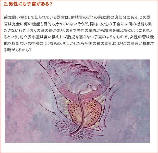 これは、胎児期に男女の生殖器がまだ分化する前の名残で、女性の子宮や膣の原型と同じ構造を持っています。